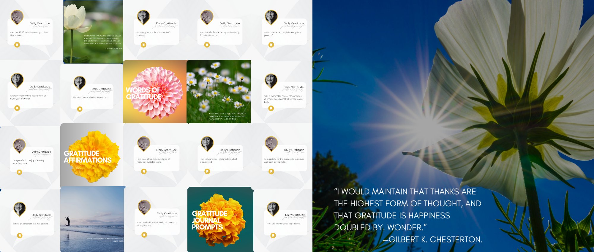Gratitude Journal Prompts, Gratitude Affirmations, and Words of Inspiration for your week.